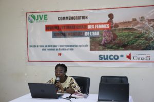 Le 28 mars 2025, en partenariat avec l’ONG SUCO, l’Association Jeunes Volontaires pour l’Environnement a commémoré en différé la Journée Internationale de la Femme et la Journée Mondiale de l’Eau. Cette double commémoration, placée sous le thème : « l’accès à l’eau, un défi pour l’entreprenariat agricole des femmes au Burkina Faso », s’est faite à travers un atelier dans la salle de conférence de Burkina Suudu Bawdè. Cet atelier a été ponctué par les communications de madame Anetina LIBABATOU, Directrice de la Protection et de la Promotion des Droits de la Femme, monsieur Poyiré Casimir SOME, représentant du Ministère de l’Eau et de l’assainissement et monsieur Serge SAWADOGO, représentant du Parlement National de la Jeunesse pour l’Eau. Les différentes communications ont permis aux communicateurs de présenter à la quarantaine de participants dont des représentants d’organisations de femmes, de jeunes et de personnes handicapées, la situation des femmes dans le contexte d’insécurité, leur contribution au PIB, particulièrement dans le secteur agricole, le défi d’accès aux terres et à l’eau pour l’agriculture, l’état des lieux de l’accès à l’eau potable et les défis qui y sont liés.